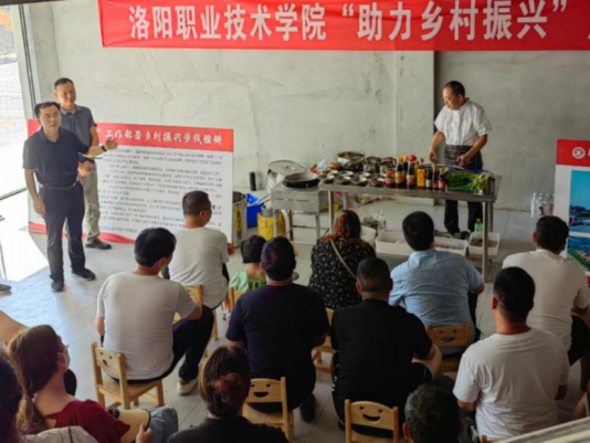 副院长余江宁带队我院牛恒林、王飞两位大师和部分党员教师代表,到栾川开展技能培训,助力乡村旅游高质量发展;院长郭又荣带领学院部分教师分别到重渡沟溪上鹊鸣民宿、百芳研学旅行服务有限公司、鸡冠洞景区,潭头镇拨云岭村和养子沟村,重庆路街道二社区和南村社区等企业、乡村、社区开展调研活动,为地方旅游发展献计献策;王飞大师等师生到栾川县以非遗剪纸助力乡村振兴,并参与教育部职业教育与成人教育司主办的“乡村振兴你我同行”典型案例短视频征集活动等。