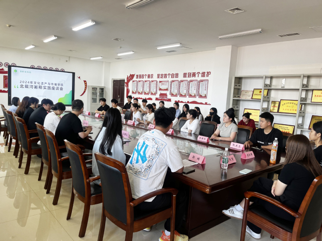 座谈会上,张明伟介绍了北戴河暑期实践的基本情况。随后,学生代表介绍北戴河暑期实践工作情况,师生针对实践岗位的体验与收获展开交流。最后,郭又荣肯定学生实践活动的成果,鼓励学生们继续积极参与暑期实践,为文旅发展贡献出自己的青春力量。