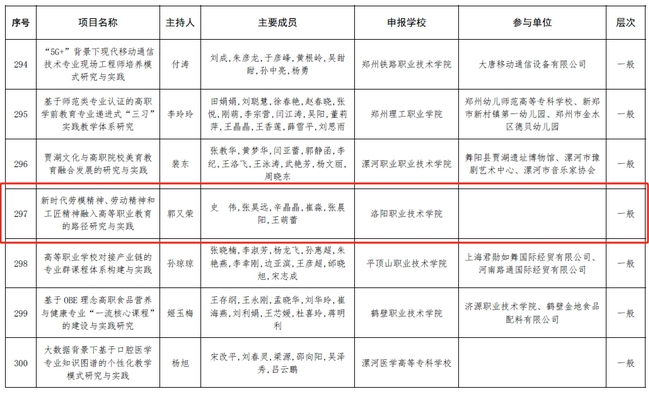 河南省高等教育教学改革研究与实践项目是进一步推动高等教育高质量发展,深化高等教育教学改革,提高人才培养质量的重要举措。近日从河南省教育厅获悉,我院院长郭又荣主持申报课题《新时代劳模精神、劳动精神和工匠精神融入高等职业教育的路径研究与实践》获批2024年度河南省高等教育教学改革研究与实践项目高等职业教育类立项,取得了我院在省部级教研课题立项的突破。