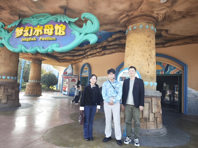 随后,郭又荣一行来到郑州海昌海洋公园。在这里,实习生们正忙碌地穿梭于各个场馆之间,为游客们提供热情周到的服务。郭又荣与同学们交流时强调,海洋公园的实习经历将为大家打开一扇了解海洋文化和旅游产业的窗户,希望同学们能够用心感受、用心学习,为今后的职业发展奠定坚实的基础。