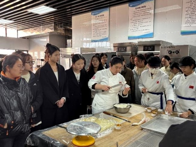 11月22日上午,文传学院23级酒店管理与数字化运营专业302班的同学前往洛职烹饪产教融合生产性实训基地进行《餐饮服务与实训》课程的实践教学活动,实践教学流程由魏秋霞老师进行讲解并示范。