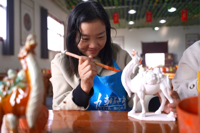 九朝唐三彩研学基地是国家级非物质文化遗产唐三彩项目生产性保护示范基地、国家级非遗项目(唐三彩烧制技艺)保护单位,国家级非遗示范基地。本次研学课程由初识三彩、三彩传承、双语分享、彩韵匠心环节构成,课程深度聚焦三彩釉色的调配、造型设计与烧制技艺,结合色彩学、材料科学等现代视角,让同学们在动手实践中领悟古代匠人的智慧与中华传统美学的独特韵味。此外,通过双语对话与互动,同学们能跨越语言障碍,解锁三彩文化密码,让国际视野与文化传承并蓄,使学习内容更加丰富多元。