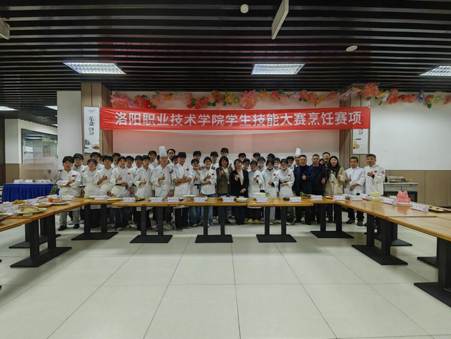 11月6日上午,烹饪工艺与营养专业与洛阳市凯旋门餐饮管理有限公司在产教融合实训基地成功举办校级学生技能竞赛。校党委副书记任晓平,课程中心主任刘晨艳及副主任童志杰、书记李世恩、院长郭又荣带领校企教师到场指导。