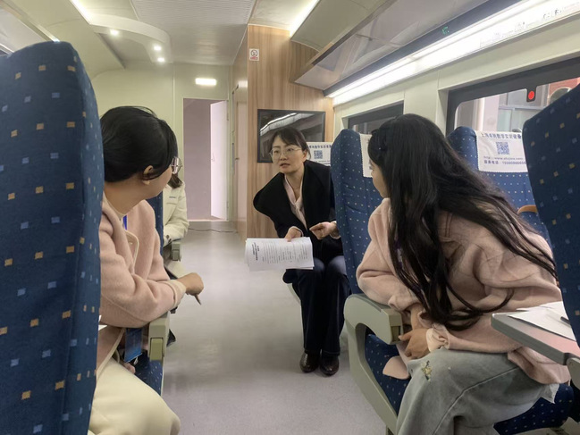 为提升高速铁路客运服专业学生的职业素养与实操能力,11月6日下午,文化遗产与传播学院举办2025年洛阳职业技术学院高速铁路客运服务与客运组织技能大赛。本次大赛在高铁模拟车厢实训室举行,院长郭又荣莅临比赛现场进行指导。