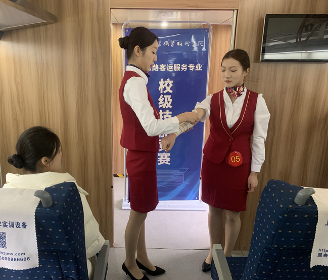本次大赛面向高速铁路客运服专业全体在校学生,设置四个赛项,包括自我介绍与职业形象展示、高铁广播播报、车厢服务展示及突发事件应急处置,全面考察学生的服务规范、语言表达、应急处置等综合能力。比赛现场,选手们在各环节中展现出规范的专业技能、沉稳的心理素质和良好的服务意识,充分彰显了高速铁路客运服务人才的综合素养。