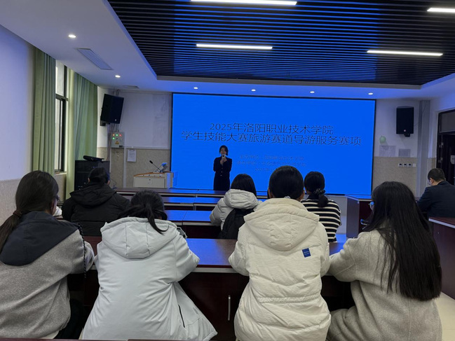 11月6日,洛阳职业技术学院学生技能大赛旅游赛道导游服务决赛在6-309和豫见河洛印象文化馆正式开赛,旅游管理教研室教师作为评委对比赛进行了评审。