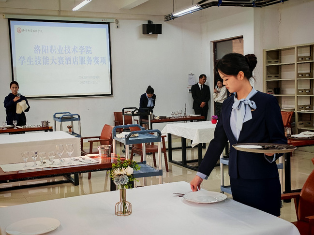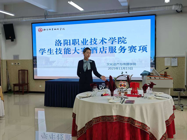 为深化职业教育改革,对接酒店行业前沿需求,洛阳职业技术学院文化遗产与传播学院成功举办了2025年酒店服务技能大赛。本次大赛为团体赛,吸引了29支参赛队伍同台竞技。