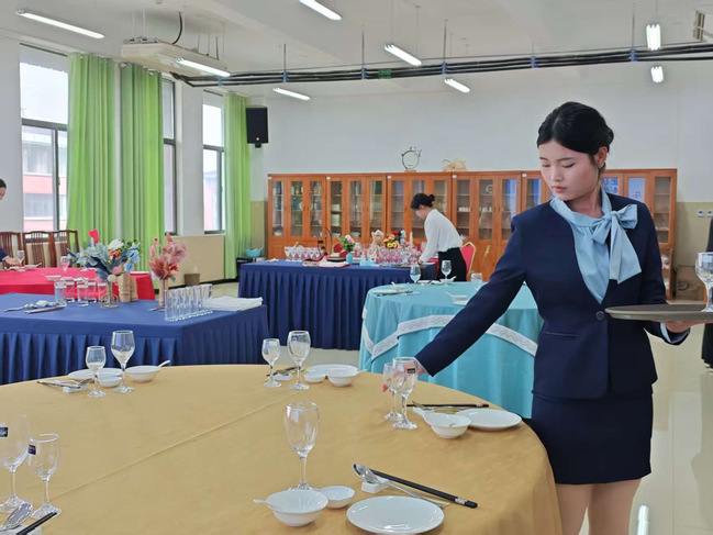 大赛全程于学院6号楼举行,分设11月6日的预赛与11月13日的决赛两个阶段,赛事内容紧密围绕酒店行业核心技能。预赛侧重“理论+数字能力”,涵盖酒店管理理论考核、主题宴会菜单与酒水营销海报设计;决赛聚焦“实操+服务素养”,要求参赛队伍完成6人中餐主题宴会摆台及创意讲解,并规范提供2人西餐摆台及全流程服务。